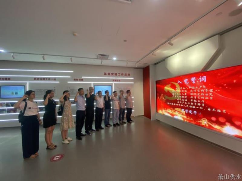 来到3楼的党建宣传展厅,我们追随解说员的脚步,先后旅行学习了时代回响、党建绘卷、先锋模范、使命征程等展区,深刻地感受萧山党建的历史生长、萧山走过的红色历程、萧山走过的红色历程、萧山时代楷模等等。旅行完毕,全体党员面临党旗,庄重地高举右拳,再一次作出自己对党的庄重允许,越发坚定了党员的庆幸感、使命感和责任感。