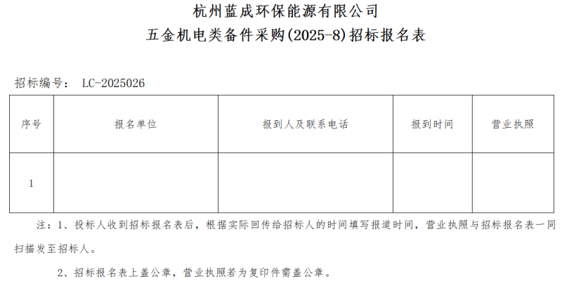 Îå¡¢·¢·ÅÕбêÎļþʱ¼ä£ºÓÐÒâÏòµÄͶ±êÈ˿ɴÓ2025Äê8ÔÂ25ÈÕÖÁ2025Äê8ÔÂ29ÈÕ£¬ÖðÈÕÉÏÎç9:00~11:30ʱ£¬ÏÂÖç12:00~16:00ʱ£¨±±¾©Ê±¼ä£©£¬ÔÚº¼ÖÝÀ¶³É»·±£ÄÜÔ´ÓÐÏÞ¹«Ë¾ÁìÈ¡ÕбêÎļþ£¬¿Éµç×Ó°æµÄÐÎʽ·¢³ö¡£