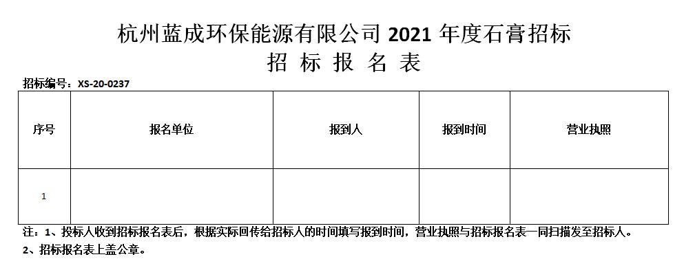 Ò»¡¢ÕÐ ±ê ÈË£ºº¼ÖÝÀ¶³É»·±£ÄÜÔ´ÓÐÏÞ¹«Ë¾£¬Õбê±àºÅ£ºXS-20-0237 ¡£