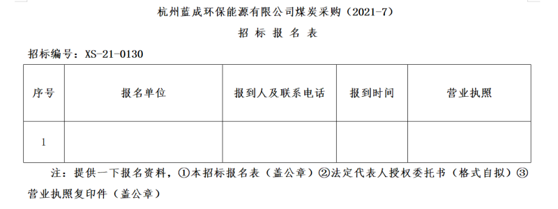 ¶þ¡¢ÕбêÏîÄ¿£ºº¼ÖÝÀ¶³É»·±£ÄÜÔ´ÓÐÏÞ¹«Ë¾ÃºÌ¿²É¹º(2021-7)¡£